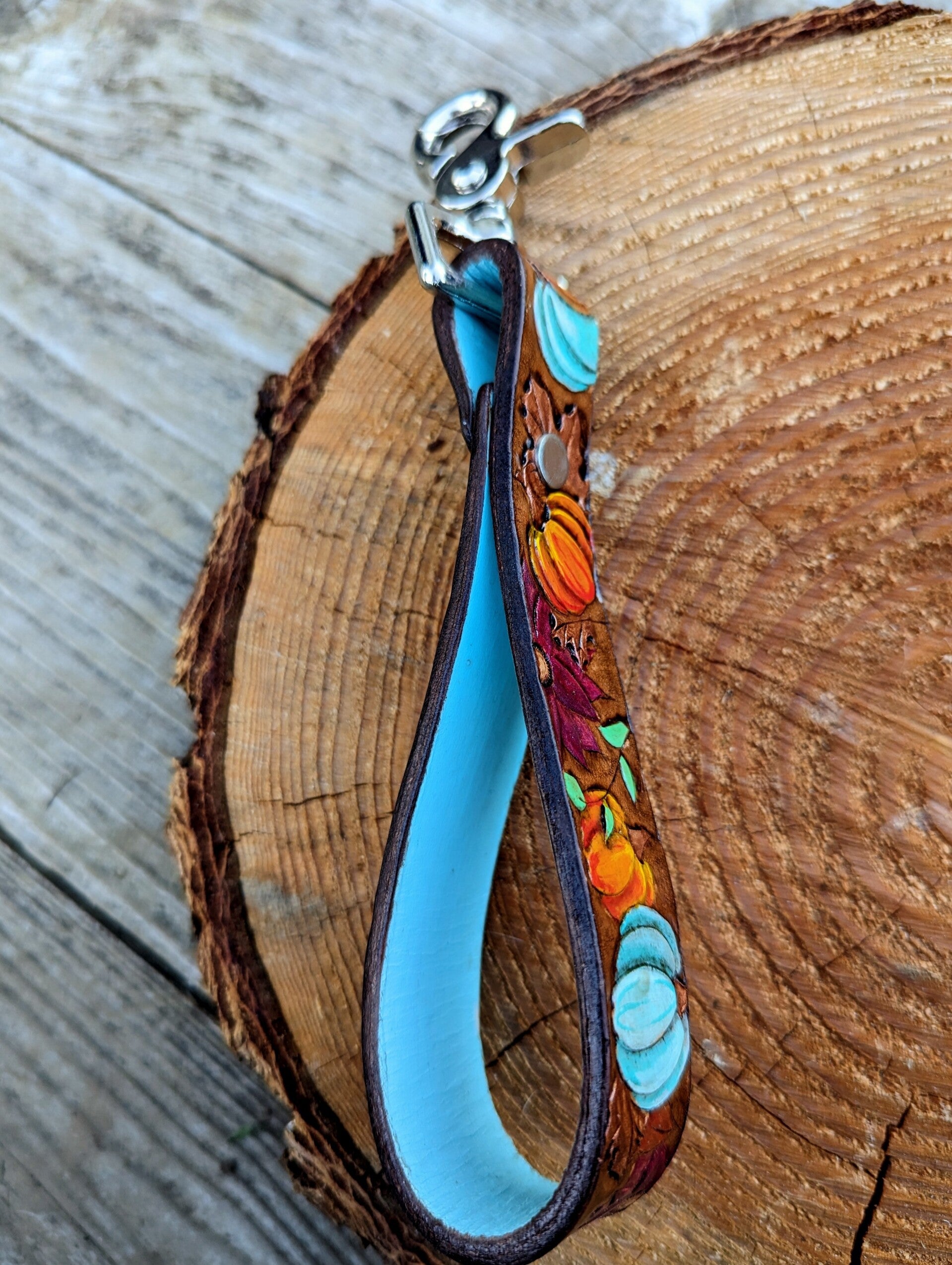 Hand tooled & hand painted keychain, built to last. These keychains have a heavy duty scissor clasp for easy use. Keep your keys close, and look stylish while doing so!